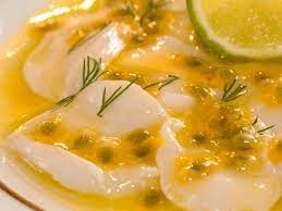 Couper le fruit de la passion en 2. Retirer la pulpe intérieure avec les graines et les mélanger dans la vinaigrette. Bien fouetter….