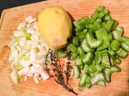 Peler carotte + navet + pommes de terre. Les tailler en dés.