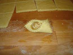 Au milieu de chaque carré de pâte, déposer 1 grosse c à c de farce aux fruits secs et au miel….