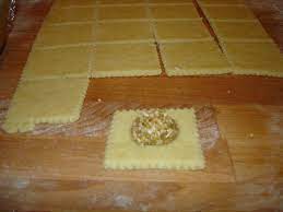 Découper la pâte en carrés de 7,5 cm de côté ……..