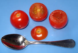 **Couper un chapeau aux tomates. avec une petite cuillère à dents, évidez les tomates …. Saler l’intérieur . retourner les tomates et les laisser dégorger.