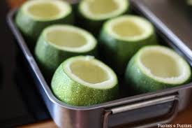 Creuser l’intérieur des courgettes, avec une petite cuillère à dents ( à pamplemousse) sans entamer les parois ( laisser 1/2 cm de chair).