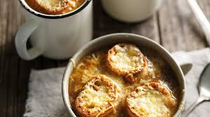 Parsemer de la moitié du fromage râpé ……. Disposer les tranches de pain grillé dans les bols …. Répartir le reste de fromage râpé.