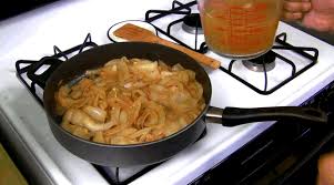 Les oignons étant légèrement dorés, verser dessus le bouillon et laisser cuire 10 mn en remuant de temps en temps.