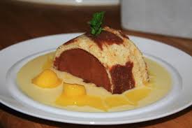 Pour servir: – Démouler la Marquise sur un plat… Décorer avec la dernière mangue pelée, dénoyautée et coupée en petits dés.
