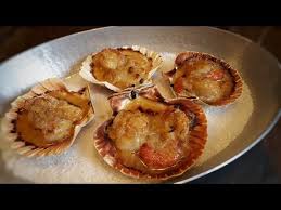 Déposer les coquilles sur une plaque du four et enfourner pour 4 mn environ, le temps de voir le beurre bouillir … et, aussitôt, sortir les coquilles et les parsemer généreusement de chapelure.