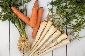 Peler et couper en gros dés pommes de terre + céleri + racine de persil + carottes.