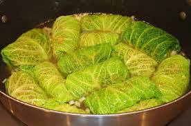 — Etaler chaque feuille de chou devant vous et retirer la grosse nervure centrale………….. Poser dessus 1 cuillère de farce et rouler la feuille autour bien serrée ( comme pour les feuilles de vigne ou de figuier farcies).