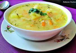 Dans un bol, fouetter ( pour éviter les grumeaux) lait + farine…………. Verser peu à peu ce mélange dans le bouillon en ébullition sans cesser de tourner énergiquement et jusqu’à ce que le mélange épaississe.