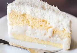 Superposer vos tranches de génoise garnies ….. Enrober tout le gâteau de meringue ……. Poudrer abondamment de noix de coco râpée…..