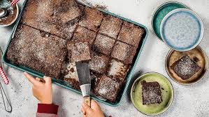 Beurrer une feuille de papier sulfurisé que vous étaler directement sur la plaque du four ou bien dans un grand moule………. Y étaler la pâte au chocolat sur 1 cm d’épaisseur et bien lisser .…………. Humecter légèrement en passant un doigt mouillé … puis poudrer de sucre.