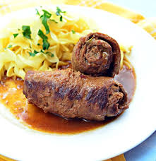 Pour servir, traditionnellement, présenter un bol de feuilles de salade non assaisonnées: chacun enroulera une roulade dans une feuille de salade et la trempera dans de la saumure ( eau des cornichons par ex) ou autres sauces au choix.