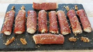 Sur chaque tranche de jambon, déposer 1 bâtonnet de fromage + des noisettes hachées………. Rouler le jambon bien serré autour de sa garniture et enfoncer 1 cure-dents sur chaque roulé….. Déposer les roulés côte à côte dans le plat beurré ….. Recouvrir de crème fraîche.