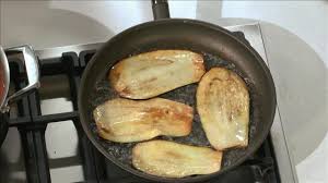 Rincer et bien éponger les aubergines… Les faire frire des 2 côtés dans l’huile + les oignons émincés.
