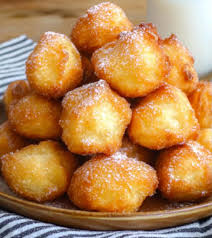 A l’aide d’une cuillère à café, prélever des portions de pâte et aussitôt les jeter dans la friture pour 4 à 5 mn ..…….. Les sortir au fur et à mesure sur du papier absorbant et procéder ainsi par fournées successives pour ne pas que ces beignets collent entre eux.