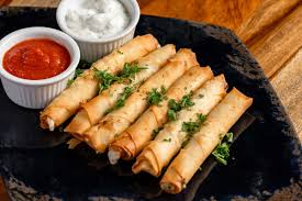 Faire chauffer fortement dans une poêle de l‘huile de friture ………… Y faire dorer les « cigares » environ 5 mn……………… Les sortir sur du papier absorbant.