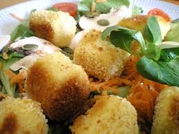 ( si vous préférez, vous pourrez enrouler les quenelles de fromage dans de la pâte à frire)