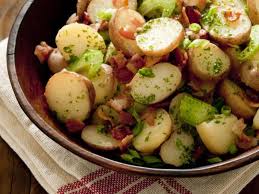 Sans les peler, faire cuire les pommes de terre 25 mn dans de l’eau bouillante salée.…… Les égoutter ………… Les couper en 2 ou en rondelles épaisses ……… Les mettre dans un saladier couvert pour les garder au chaud.