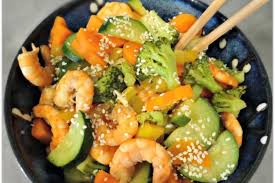 —Dans un wok, une poêle ou une sauteuse, dans l’huile chaude et sur feu vif, faire sauter 7 à 8 mn carottes + fenouils + navets + champignons ….. Ajouter les avocats et poursuivre la cuisson 5 mn .…. Incorporer fromage blanc + jus d’1 citron + sel + poivre ( + les crevettes) et continuer 3 à 4 mn la cuisson.