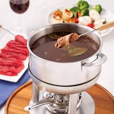 Verser ce bouillon de légumes ( avec ou sans les légumes, au choix) dans un caquelon à fondue qui ira sur la table……………….
