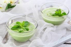 Dans un blender, mixer petits pois + lait de soja + menthe ciselée longuement jusqu’à obtenir une crème fluide et homogène …..