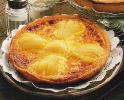 Sortir le moule du four et napper les poires du mélange aux oeufs ………… Baisser le four à th 6/7 (200°) ……… Poursuivre la cuisson 30 mn……..