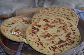 — Cuisson: – Huiler légèrement votre poêle et, sur feu assez vif, faire rapidement cuire successivement les 4 galettes d’abord 3 mn côté semoule …… puis les retourner pour 3 mn côté purée de dattes ..