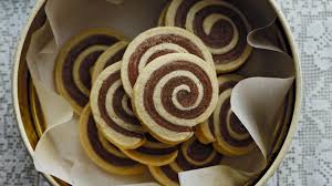 Superposer les 2 pâtes ( = les poser l’une sur l’autre) et les rouler ensemble pour former un escargot ….. L’envelopper dans du film alimentaire …………….. Laisser durcir 30 mn au frigo.