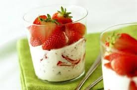 A l’aide d’une poche à douille ( ou à la cuillère) garnir de crème le fond de 4 grands verres ( ou bols, pots à confiture ….) ……………………….. Répartir les fraises par dessus...