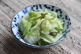 Dans un bol, préparer la sauce Sanbaizu en fouettant huile + vinaigre + sucre jusqu’à dissolution de celui-ci ….. — Dans une casserole, chauffer 1 c à s d’huile. Y faire sauter 1 mn champignons Shiitaké + allumettes de carotte + poireau ….. Arroser de sauce Sanbaizu et touiller en portant à ébullition pour aussitôt retirer du feu. Verser le tout sur le chou + huile de sésame ………. Mélanger délicatement ……………