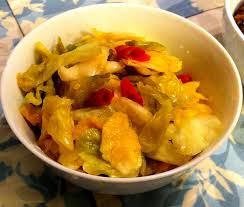 Porter une casserole d’eau moyenne à ébullition.… Retirer la nervure épaisse centrale des feuilles de chou. … Tailler les feuilles de chou en carrés de 3 cm de côté………. Les plonger 2 mn les carrés de chou dans l’eau bouillante… Les égoutter et les éponger avec du papier absorbant………………….. Les saler, les poivrer, les placer dans un saladier.