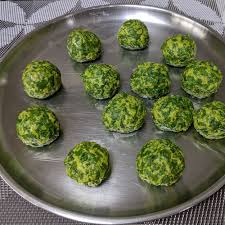 –Dans une casserole, chauffer du ghi. Y faire revenir 1 mn les épices + le panir émietté..………. Ajouter les épinards + sel + poivre et faire revenir 2 mn.…. Oter du feu et transvaser dans un saladier. Incorporer la farine de pois chiches. Bien pétrir ………… Façonner des boulettes que vous faites frire jusqu’à ce qu’elles brunissent ( 4 mn).……. Les égoutter sur du papier absorbant.