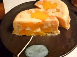 …………………………Juste avant de servir, peler et dénoyauter la dernière pêche. La couper en lamelles ( tout comme les oreillons réservés de la boîte)……. Poudrer la surface du ou des flans de sucre glace …. Disposer dessus les lamelles de pêche.