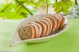 Tailler des tranches fines ( 3 mm)……….. Les enfourner sur une plaque non graissée pour environ 12 mn: elles deviennent croquantes.