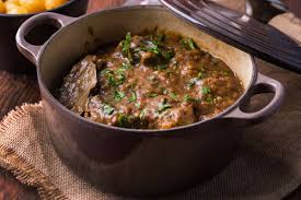………………….. La viande étant cuite, la sortir sur un plat. Dans leur jus de cuisson, faire revenir cornichons/câpres/persil + le vinaigre réduit…….. Napper la viande de cette sauce. Entourer la viande avec les petits oignons.