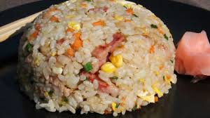 —Dans un wok ou une grande poêle, chauffer l’huile….. Y faire revenir 1 mn oignons + gingembre Ajouter le porc haché et mélanger 3 mn .………………………. + sauce soja + sucre + sel. Mélanger 1 mn ….. Incorporer le riz et, sur feu doux, laisser doucement réchauffer en touillant de temps en temps …..…
