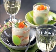 Fouetter la crème fleurette en Chantilly …….. L’incorporer à la crème de saumon précédente + sel + poivre………………. Répartir la préparation dans 4 verrines ou grands verres …………. Placer au frais au moins 1 h.