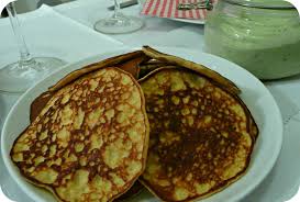 Prélever des cuillères à soupe de pâte et les déposer, espacées sur la plaque en faisant des mouvements circulaires pour façonner des disques comme des blinis …..