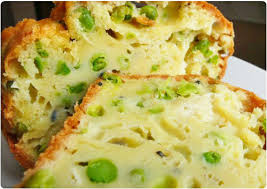 —Dans un saladier, fouetter le reste de beurre + les oeufs ……. Ajouter farine + levure + sucre ….. + safran + sel …. + le Cheddar en dés + les petits pois. Bien mélanger pour obtenir une préparation équilibrée………….