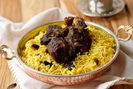 …………………..Dans une grande poêle ( wok, karhai, poêle à paella), tapisser le fond avec la moitié du riz ( cuit à moitié) ……………………….. Couvrir avec la viande et sa marinade ..…………………….. Recouvrir avec les 3/4 des oignons frits + les pommes de terre frites ……………………… Terminer par le reste de riz ( bien égaliser)…. + le reste des oignons. Mettre un couvercle et, sur feu moyen, cuire 25 mn.