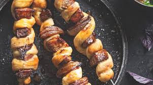 ….. Servir les brochettes bien chaudes, arrosées de sauce.